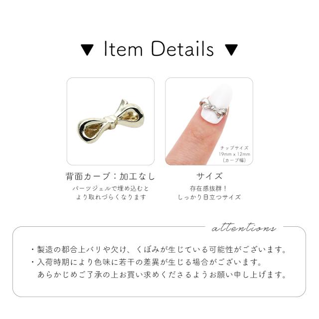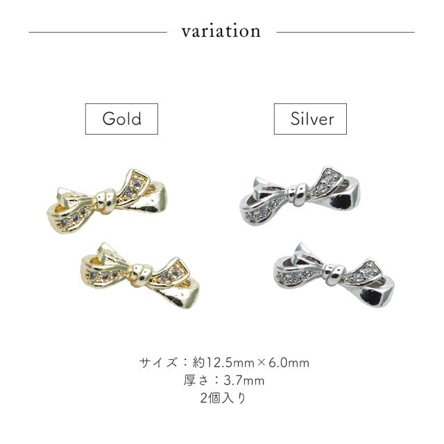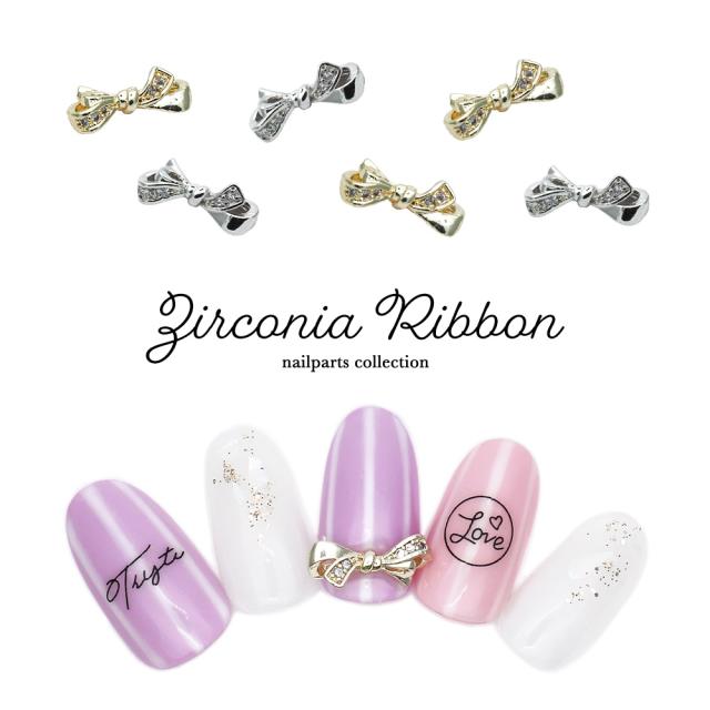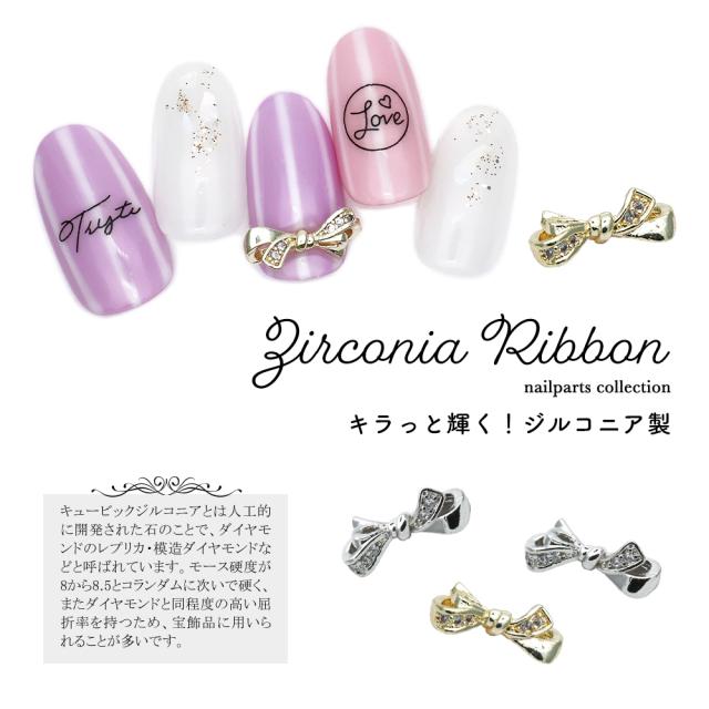 ネイルパーツ ジルコニア製 ジルコニアリボンパーツ [ゴールド/シルバー] 2個入り