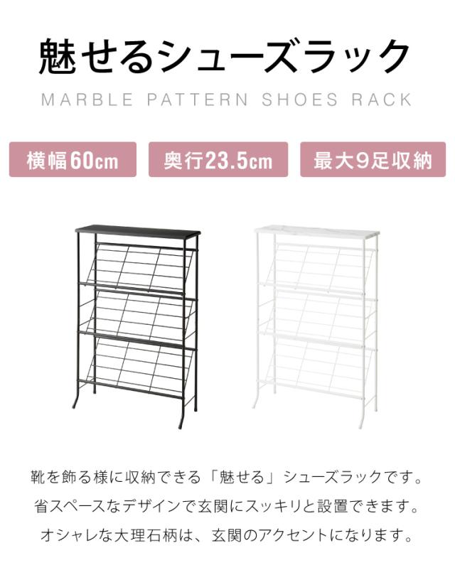 棚付き シューズラック 6足収納 幅60cm おしゃれな大理石柄 玄関収納 シューズラック 下駄箱 スリム 靴箱 収納棚 ラック オープンラック【送料無料】