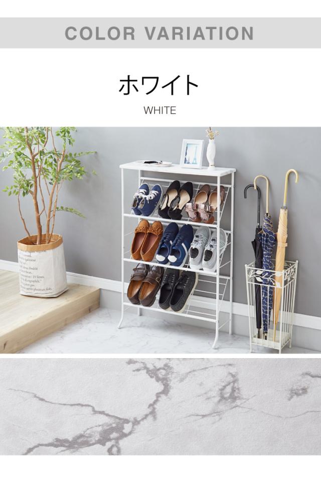 棚付きシューズラック 大理石柄