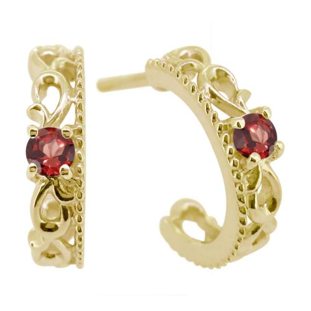 18金 ピアス メンズ 小さめ フープピアス 唐草 両耳 ガーネット 誕生石 1月 18k