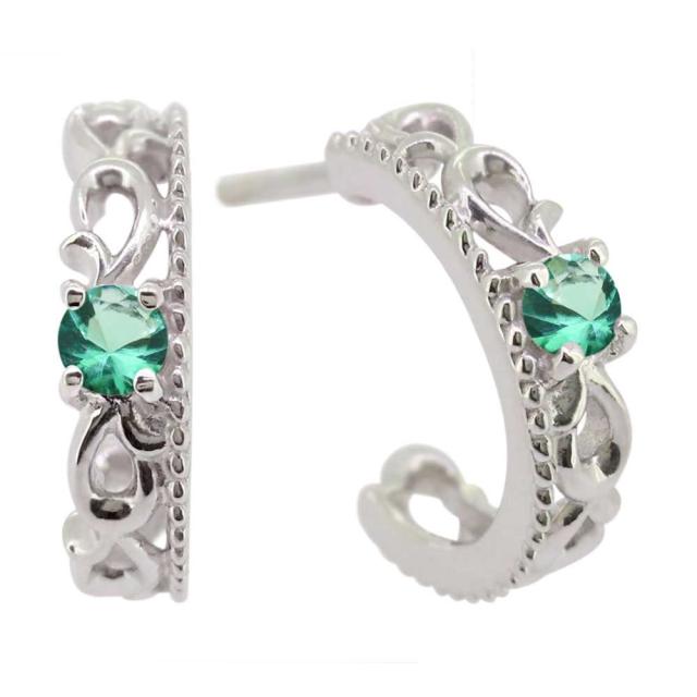 フープピアス メンズ 両耳 エメラルド 唐草 アラベスク ピアス シルバー 小さめ