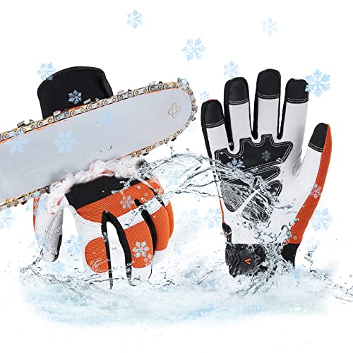 Vgo チェーンソー手袋 防寒 防水 防振手袋 メカニックグローブ 掌当て付き 背抜き 羊革 作業手袋 皮手袋 耐振動 振動緩和 滑り止め 林業 伐採 防護用 チェーンソー グローブ (左手保護,M,オレンジ,GA8912FWCS)