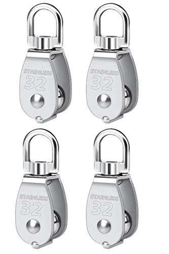 シュウ氏テク M32 ステンレス プーリー 貨物輸送 USU304 滑車ローププーリー クライミング スイベル 式 耐久耐荷重250kg 4個セット