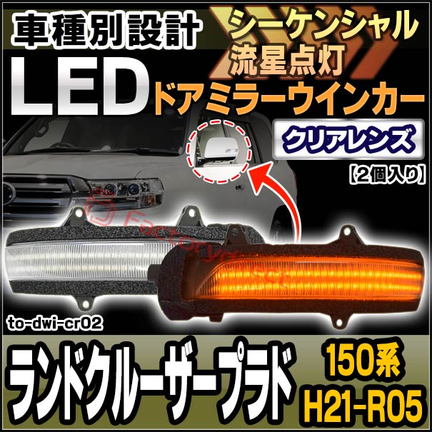 ll-to-dwi-cr02 (シーケンシャル点灯) (クリアーレンズ) Land Cruiser Prado ランドクルーザープラド (150系 H21.09-R05.10 2009.09-2023.10) トヨタ TOYOTA LEDドアミラーウインカー ( シーケンシャル ウインカー ウィンカー カスタム 車 流れる ドアミラー )