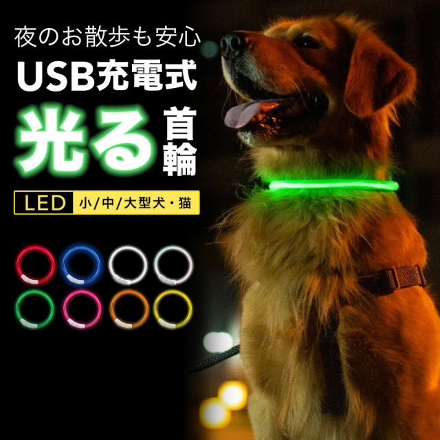 首輪 犬 光る 猫 LEDライト 犬の首輪 USB充電式 ペット 小型犬 中型犬 大型犬 35cm 50cm 70cm LED ライト ペット用品 ドッググッズ 安全 散歩 おしゃれ
