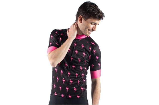 サイクルジャージ カジュアル『フラミンゴブラック』数量限定直輸入 サイズ交換可 サイクルウェア 半袖 フラミンゴ柄 おしゃれ カジュアル メンズ プレゼント