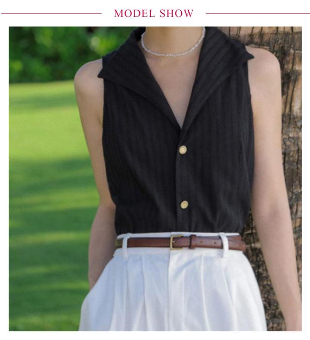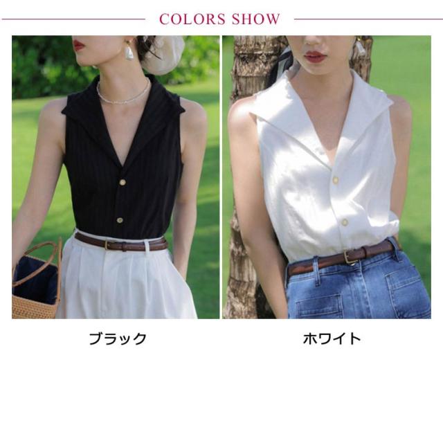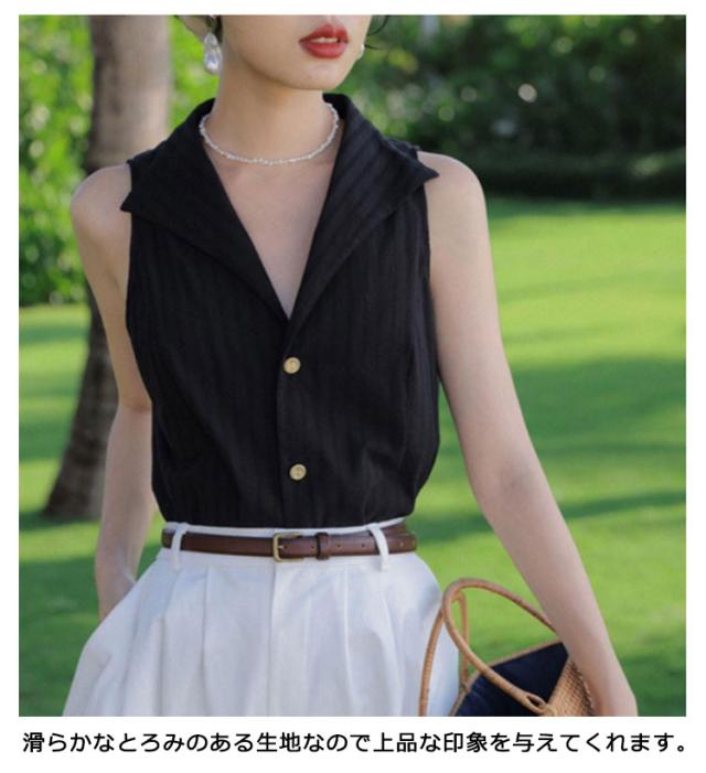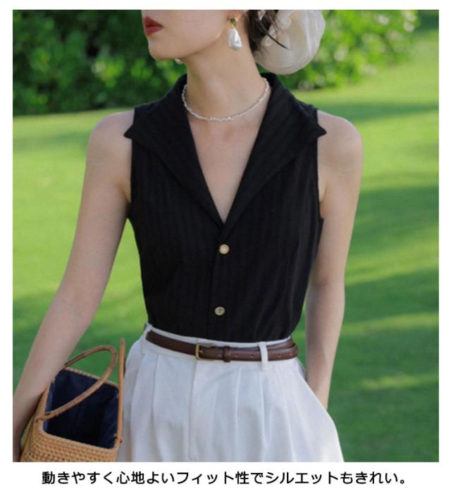 送料無料 シャツブラウス ノースリーブ スリーブレス テーラード 美フォルム ゆるシャツ タンクトップ トップス 前開き vネック ブラウス ストライプ レディース 春 夏 フォーマル オフィス ブラウス 大人 上品