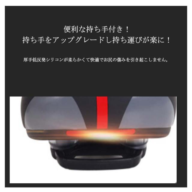 | 中空低反発シリコンサドル。 ダブルショック吸収まるで平地のよう。ボトムボールショック設計、ゴム製の衝撃吸収材 大きな緩衝力で振動を効果的に吸収! 便利な持ち手付き!持ち手をアップグレードし持ち運びが楽に! 厚手低反発シリコンが柔らかくて快適でお尻の傷みを引き起こしません。 吸湿性や通気性に優れムレにくく快適な走行が出来ます。 非常に柔軟性に優れたクッションで硬すぎず柔らかすぎず快適性を実現しています。 低反発形状記憶出来る素材を使用しており高いフィット感を得ることができます。 高輝度反射で夜間の走行も安全です。 | |