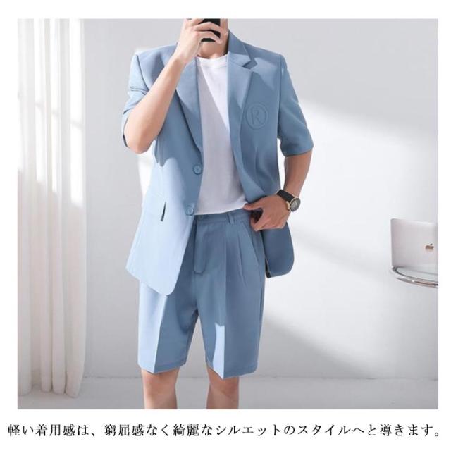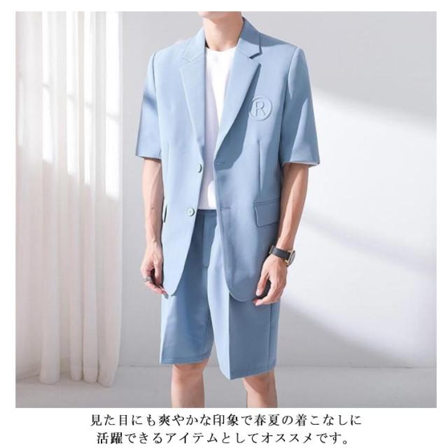 サマージャケット セットアップ メンズ 半袖 サマースーツ 春 夏 おしゃれ テーラードジャケット ハーフパンツ シンプル 韓国ファション パーティー S-3XL