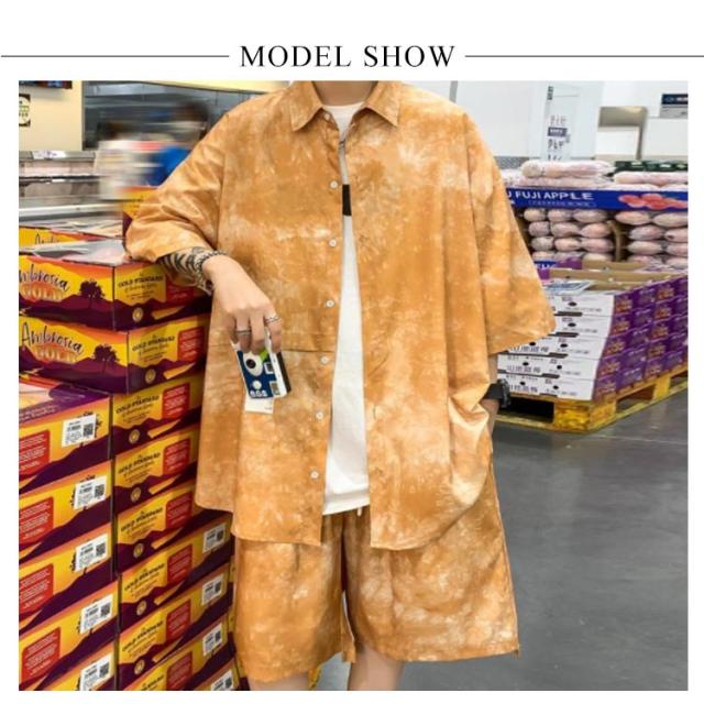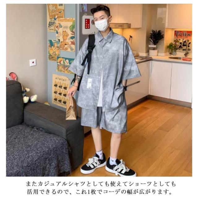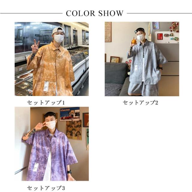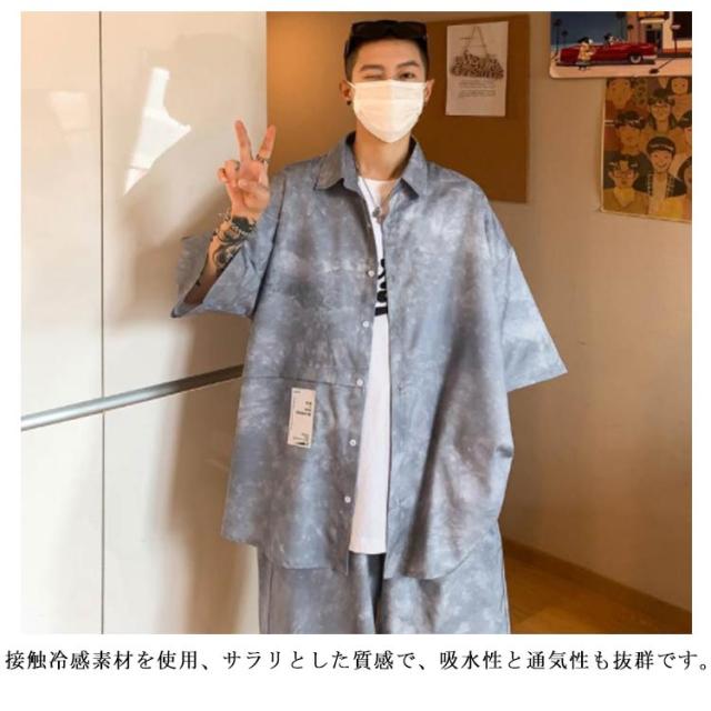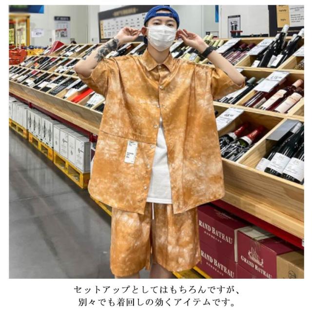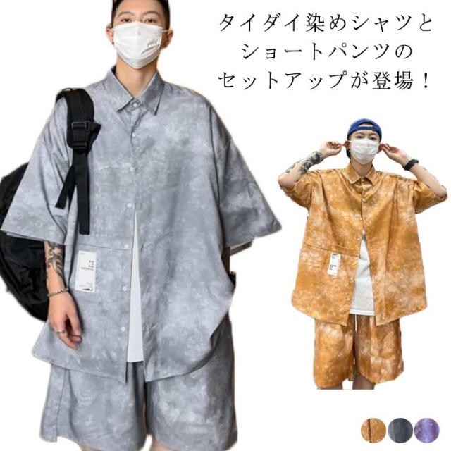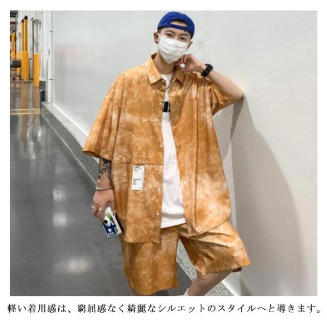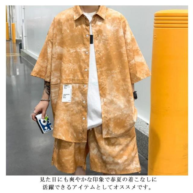 タイダイ染め シャツ メンズ セットアップ ショートパンツ 花柄シャツ ボタニカル柄 トップス カジュアルシャツ 開襟シャツ 半袖シャツ 接触冷感 夏 夏服 総柄 リゾート ギフト M-5XL