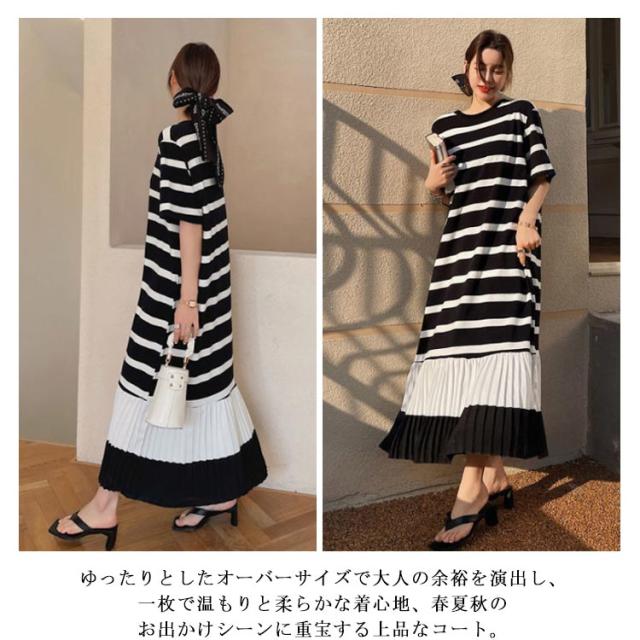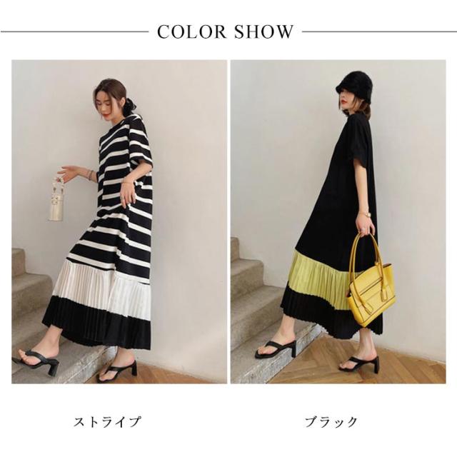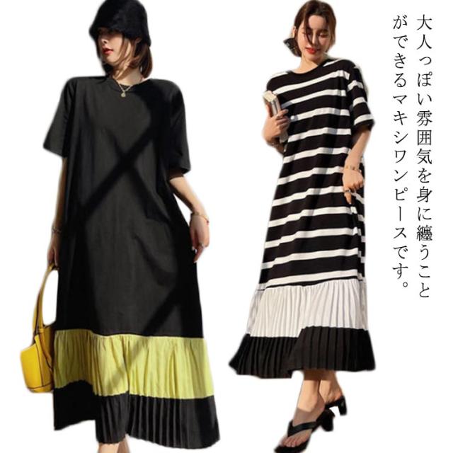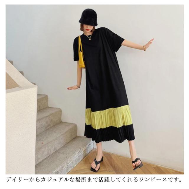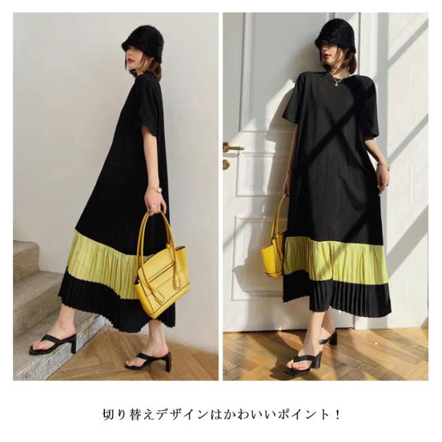 プリーツ切り替え ティーシャツワンピ Tシャツワンピ ロングワンピース ロングTシャツ レディース ロンT 大人 夏 半袖 ルームウェア 部屋着 tシャツワンピ ゆったり カジュアル ストリート L XL 2XL 3XL