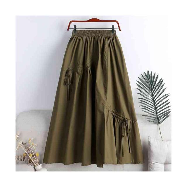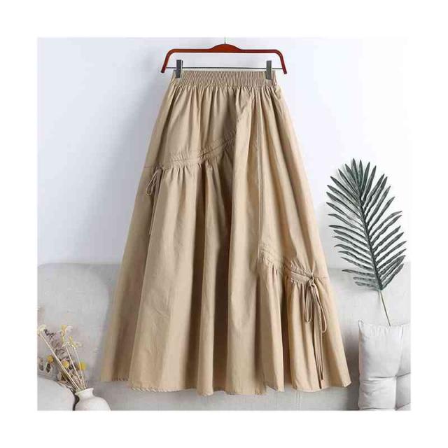 タックフレアスカート レディース 夏用 ハイウエスト ウエストゴム 切り替え ミディアム丈 着痩せ フレアスカート ロングスカート プリーツスカート 無地 Aライン ボトムス シンプル カジュアル おしゃれ