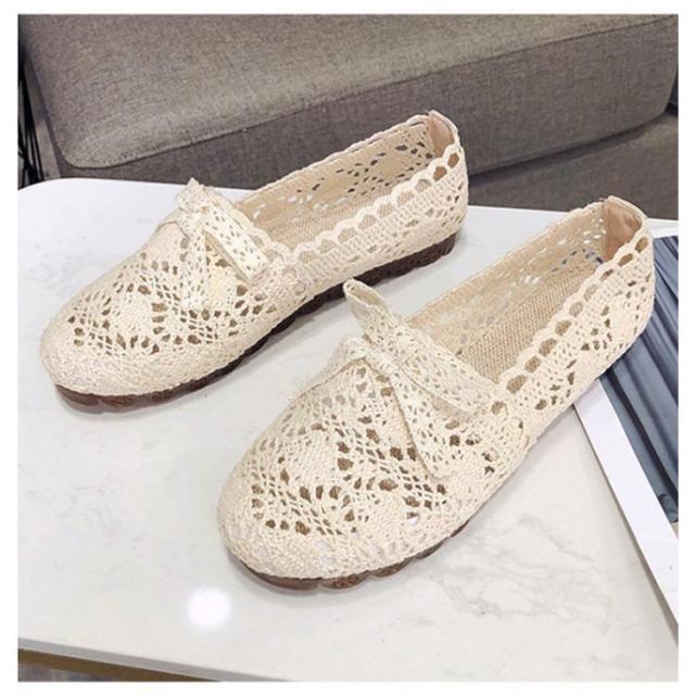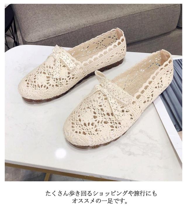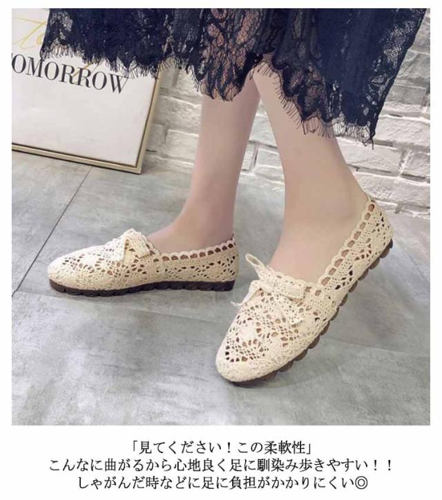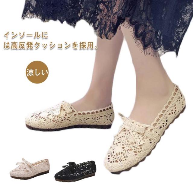 送料無料 パンプス 痛くない ローヒール ぺたんこ 脱げない 刺繍レース メッシュ 歩きやすい 疲れない 履きやすい 通勤 仕事 立ち仕事 小さいサイズ 走れる 通気性抜群 フラットシューズ レディース靴 ファッション 涼しい 黒 ブラック 大きいサイズ