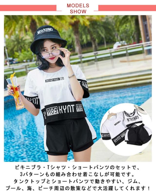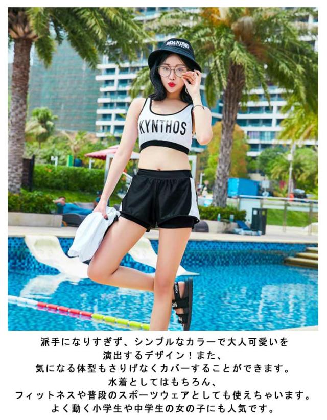 | 柔らかく、快適で弾力性があり、余分な肉を覆うことができます。 汗を吸収して速乾性のある素材は、汗をすばやく吸収し、素早く乾くことができます。また、安心のUV対策生地を使用しているため、「着るだけ」で、うっかり日焼け予防を実現! 派手になりすぎず、シンプルなカラーで大人可愛いを演出するデザイン!また、気になる体型もさりげなくカバーすることができます。水着としてはもちろん、フィットネスや普段のスポーツウェアとしても使えちゃいます。よく動く小学生や中学生の女の子にも人気です。 ビキニブラ・Tシャツ・ショートパンツのセットで、3パターンもの組み合わせ着こなしが可能です。タンクトップとショートパンツで動きやすい、ジム、プール、海、ビーチ周辺の散策などで大活躍してくれます! 適用場合: スポーティーなデザインなので、夏場のウォータースポーツや野外活動の際、 海、ジム、プールやビーチ、サーフィン、ウォーキング、ジョキング、ジム、ヨガ、体操、などの様々なシーンで大活躍。 | |