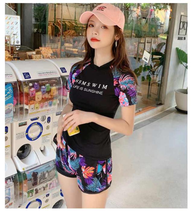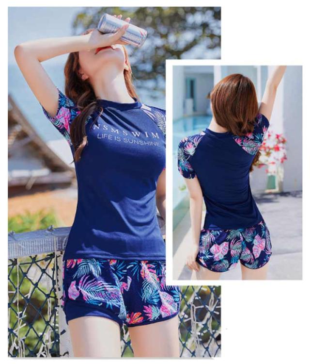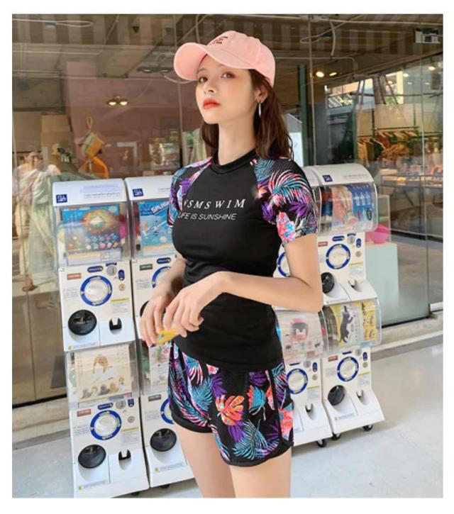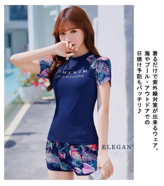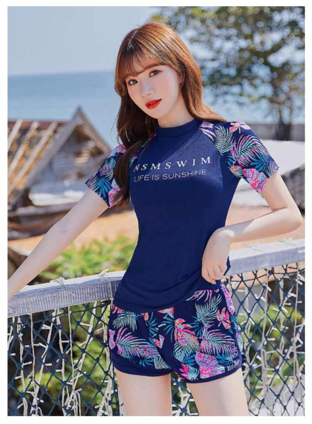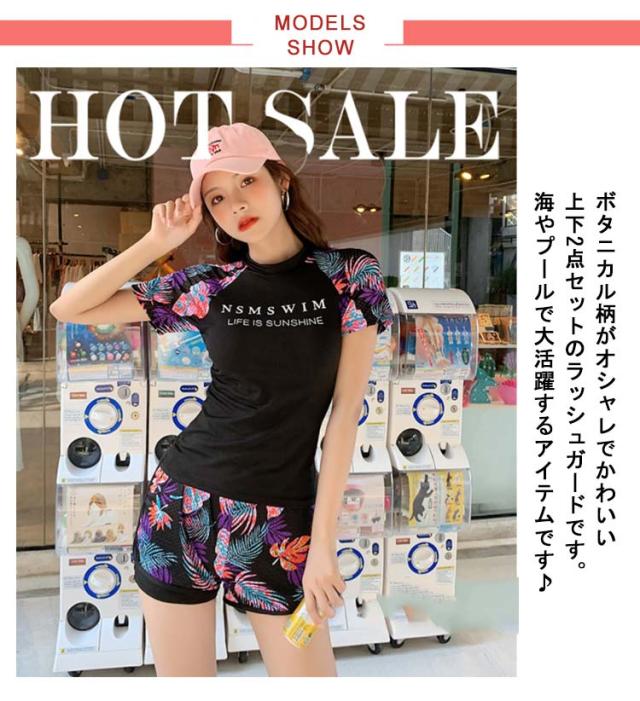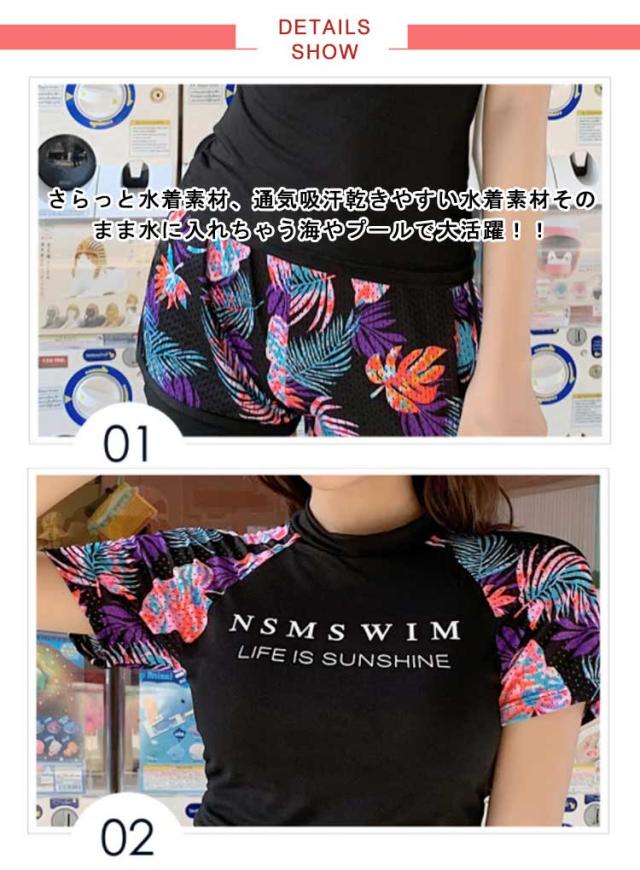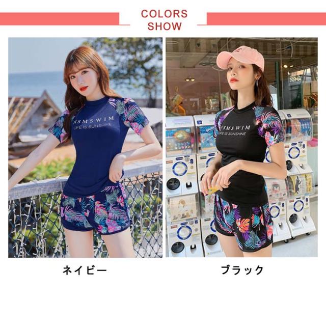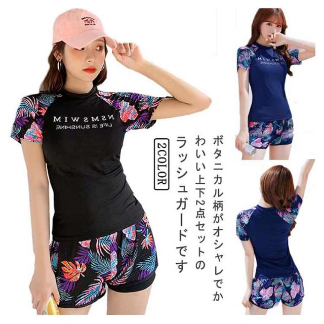 ラッシュガード ボタニカル柄 上下セット セパレート 水着 レディース タンキニ 半袖 ショートパンツ 水陸両用 高校生 中学生 女子 高生 ビキニ おしゃれ 学生 10代 20代 大人 体型カバー 大きいサイズ 韓国 送料無料