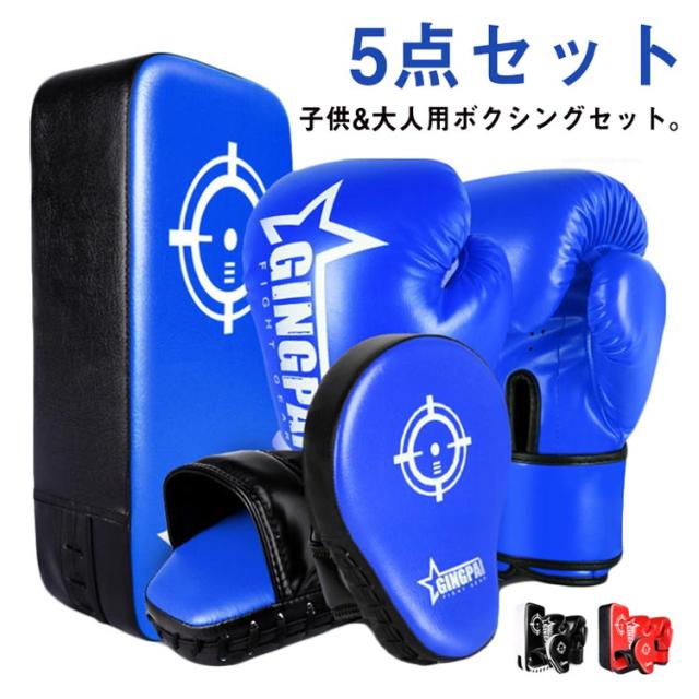5点セット ボクシング 大人用 子供用 キックボクシングパッド グローブ 武術 ボクシンググローブ キックミット テコンドー ミット 武術 練習用 空手 格闘技 パンチングミット ボクサー ボクシング セット キッズ パンチング
