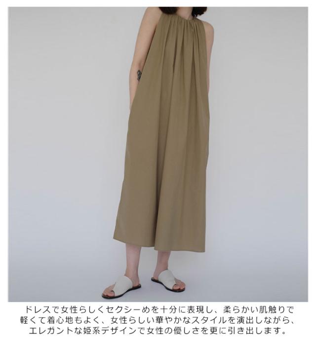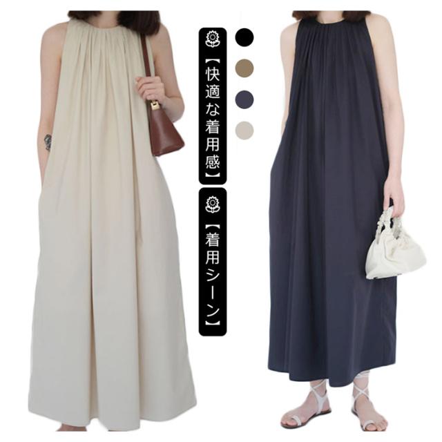 送料無料 ホルターネック ロング丈 ノースリーブ ワンピース 体型カバー ゆったり フレア 涼しい リゾートワンピース ロングワンピース マキシワンピース 夏 レディース キャメル ネイビー ブラック ホワイト
