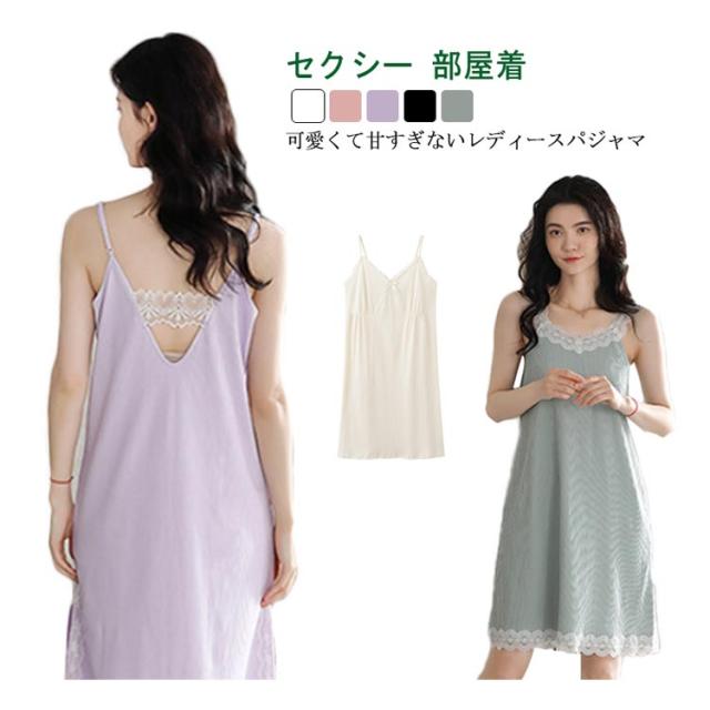 【送料無料】キャミソールワンピース パジャマ レディース かわいい ワンピース ルームウェア キャミソール ノースリーブ セクシー リボン 大きいサイズ 部屋着 寝間着 シンプル 可愛い ナイトウェア 無地 女性用 旅行 春夏 プレゼント ギフト