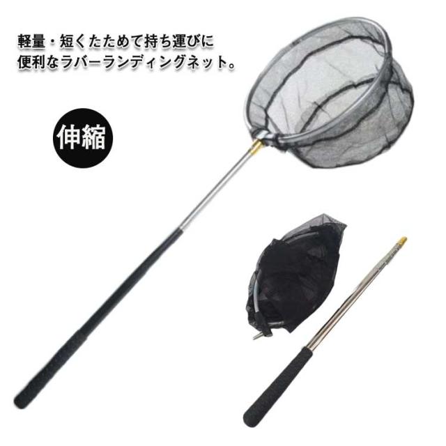 ラバーランディングネット 折りたたみ ランディングネット 玉網 たも網 フィッシング 釣り ランディングツール オーバルフレーム ラバーネット ショアジギング たも タモ 網 釣り具 伸縮 組立て簡単 コンパクトサイズ