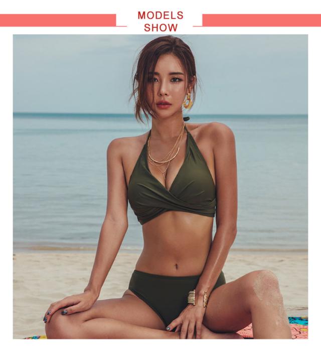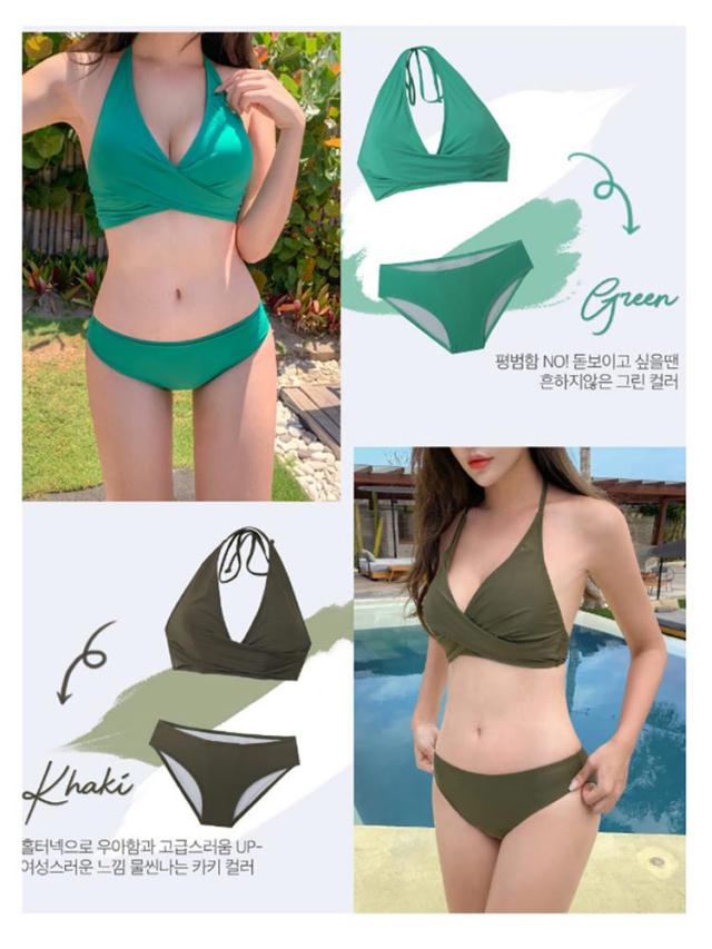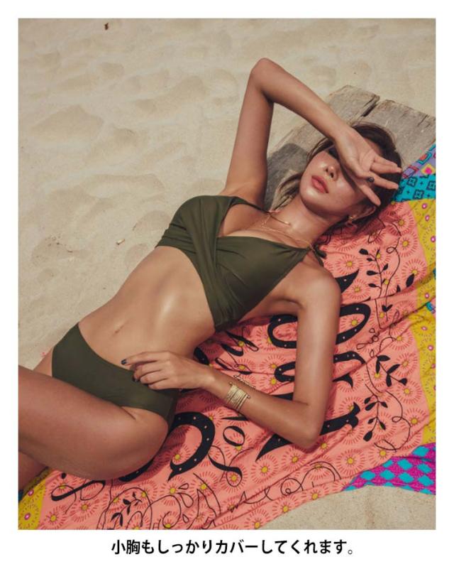 ビキニ セット 水着 セクシー バンドゥ レディース 体型カバー 夏 ノンワイヤー リボン ホルターネック セパレート 韓国風 無地 カーキ オトナ女子 盛れる ぽっちゃり 小胸 カバー きれいめ 海水浴 温泉 ビーチ 大人 おしゃれ 送料無料