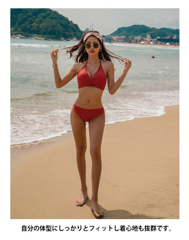 | セクシーな大人の魅力が素敵なビキニセットです。 フロントツイストのホルターネックが、セクシーでカッコイイスタイルに整えてくれます。 小胸もしっかりカバーしてくれます。 今年の水着はバックスタイルがお洒落じゃないと! ストラップのリボン紐がかわいい! 自分の体型にしっかりとフィットし着心地も抜群です。 フロントツイストのブラが寄せ上げ効果バツグン! | |