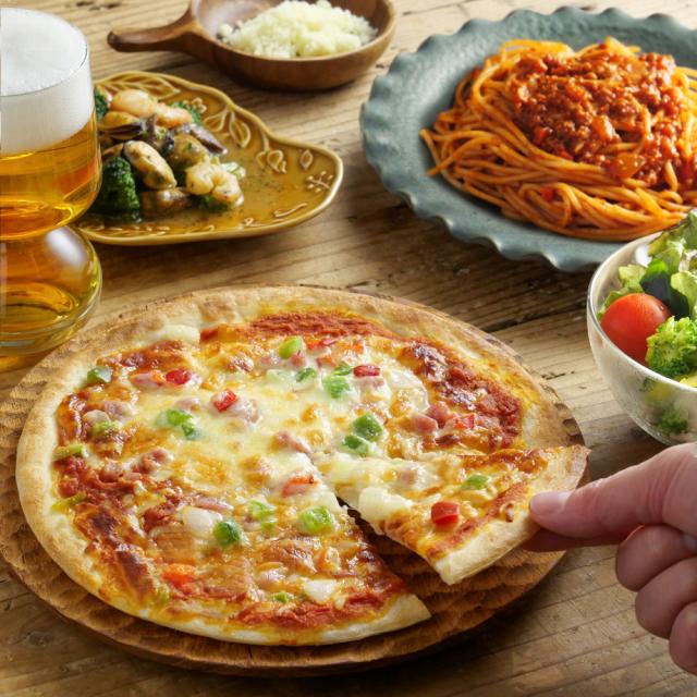 ナチュラルチース(外国製造)、小麦粉、粗ごしトマト、野菜(グリーンベルペッパー、レッドベルペッパー、玉ねぎ)、ソーセージ、ベーコン、食塩、糖類(麦芽糖、ぶどう糖)、イースト、粉末デュラム小麦サワー種/トレハロース、セルロース、調味料(アミノ酸)、リン酸塩(Na)、酸化防止剤(V.C)、くん液、発色剤(亜硝酸Na)、(一部に小麦・乳成分・豚肉を含む)