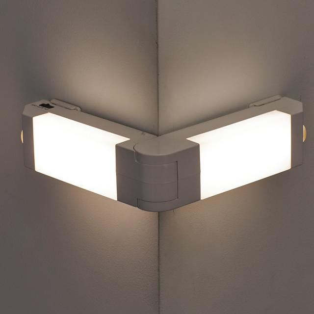 コーナー用センサーライト 四角型 人感・明暗センサー式 ( センサーライト コーナー用 電池 人感センサー 明暗センサー ライト センサー センサータイプ 電池式 足元灯 白色 自動点灯 照明 配線不要 防災用品 防災グッズ )