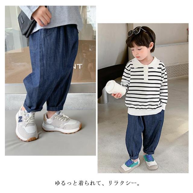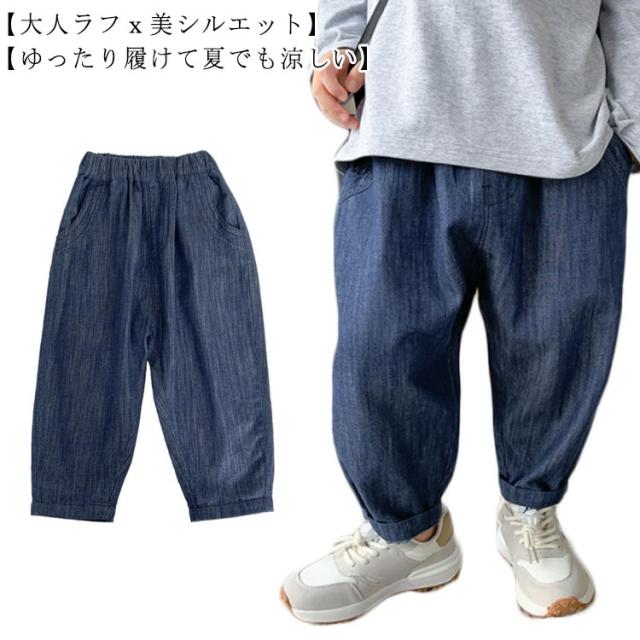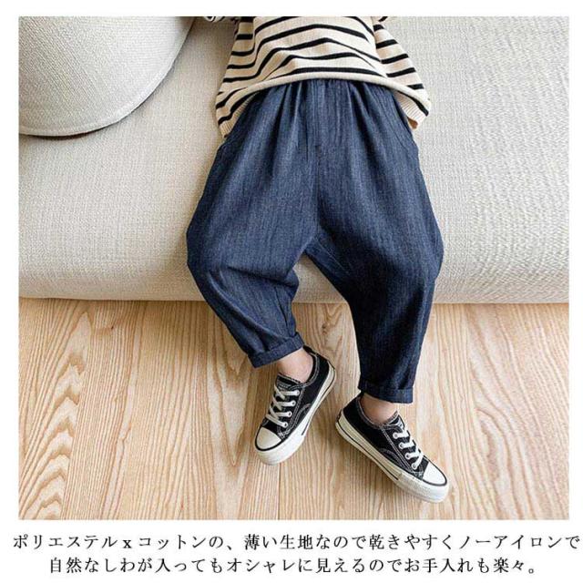 送料無料 キッズ テーパードイージーパンツ 薄手 リラックスパンツ 子供 こども 男の子 ゆったり 長ズボン シンプル おしゃれ 長パンツ デニム 女の子 無地 90cm 100cm 110cm 120cm 130cm 140cm 2022春夏新作 ハプティック