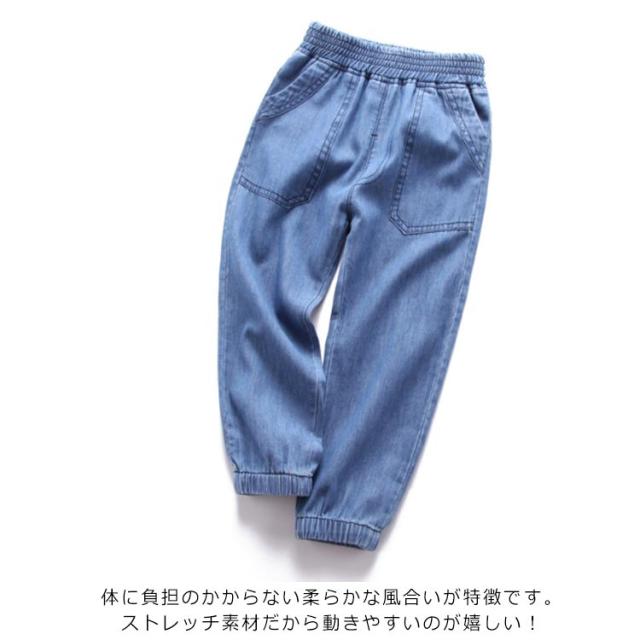 送料無料 キッズ ダンス 衣装 デニム パンツ ジーンズ ジーパン ゆったり ダボダボ 練習着 ボトムス ズボン 紐付き 紐なし ブルー レッスン着 子供 子ども 子供服 青 ブルー 男の子 女の子 ヒップホップ hiphop ストリート ティーンズ キッズ ジュニア
