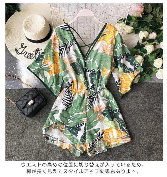 送料無料 シフォン ワンピース ハワイイ ドルマン Vネック 花柄 旅行 海 夏 ビーチ 休暇 ミニワンピース 外出 お出掛け デート パーティ