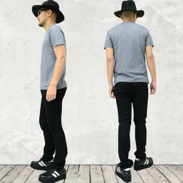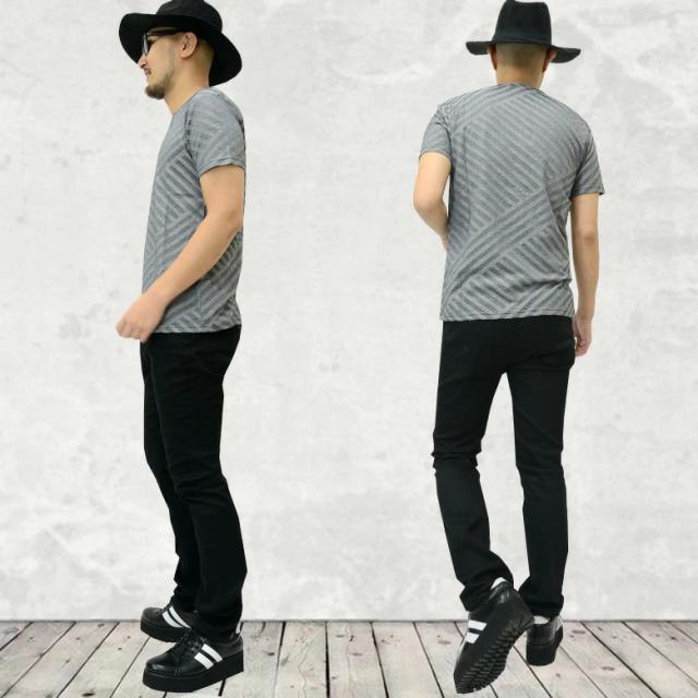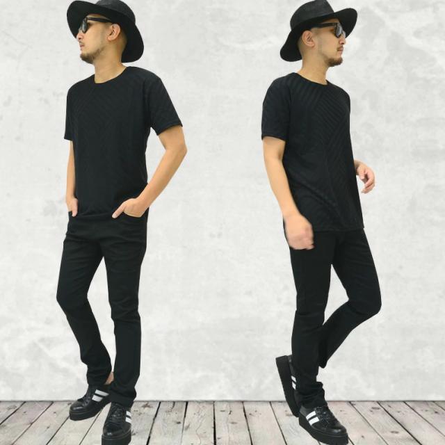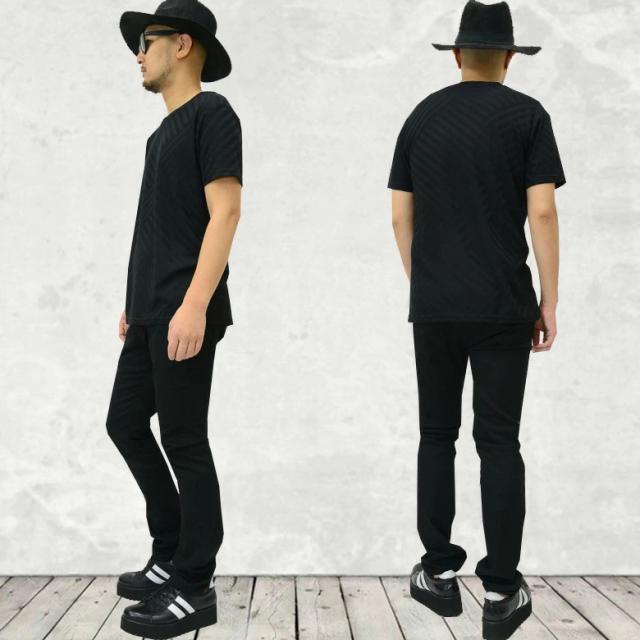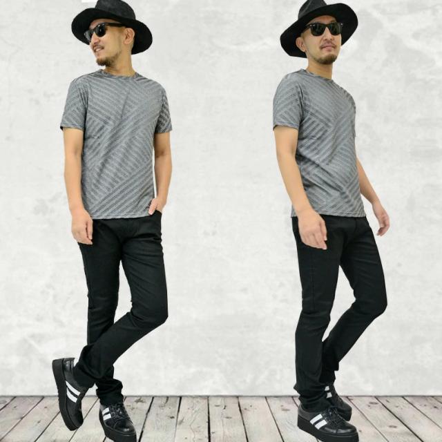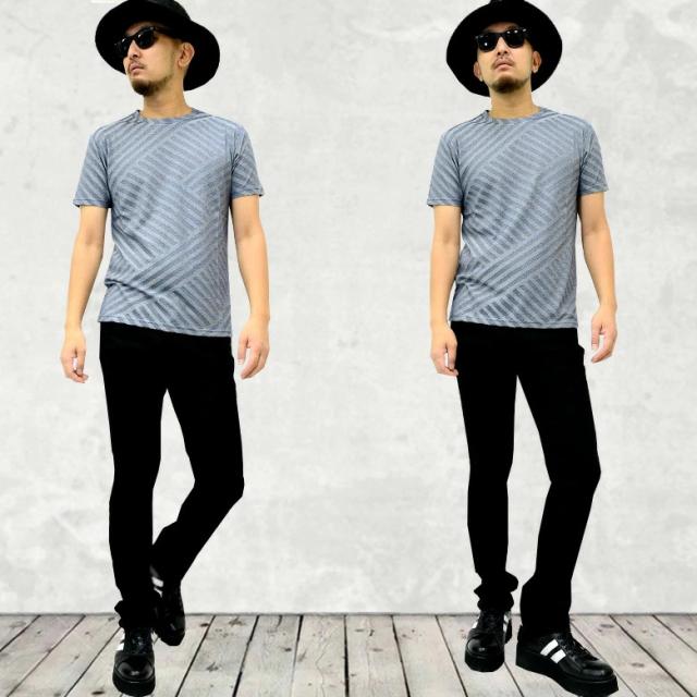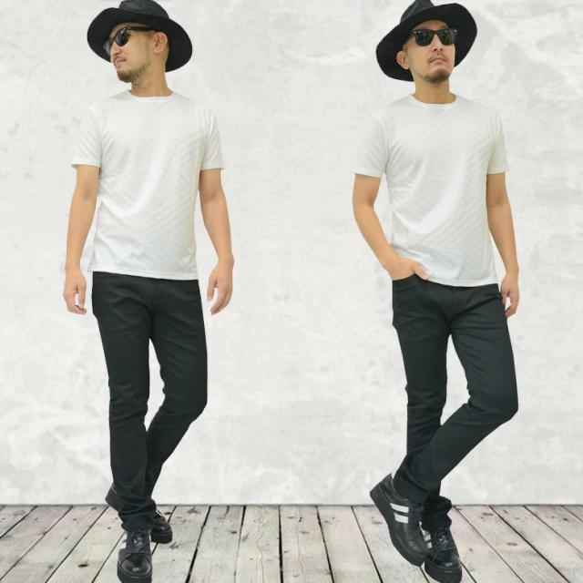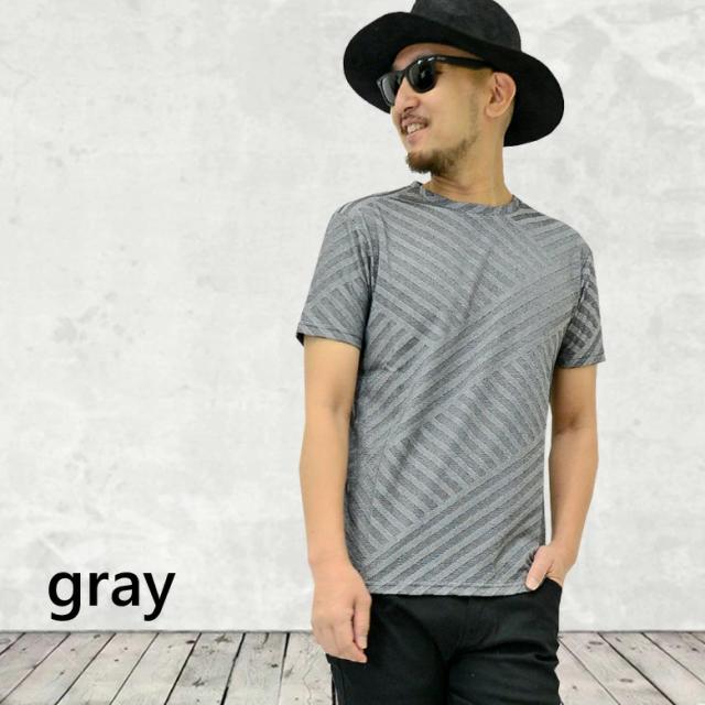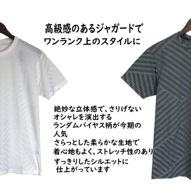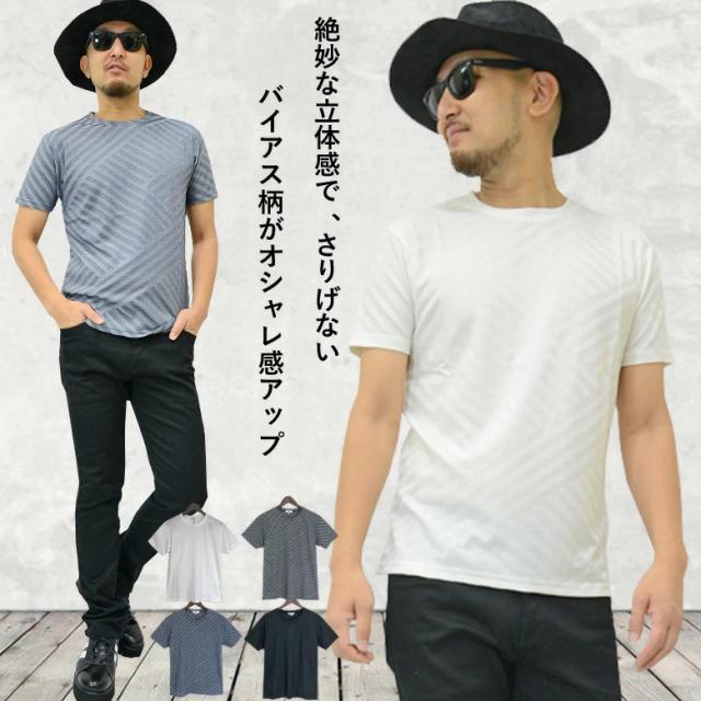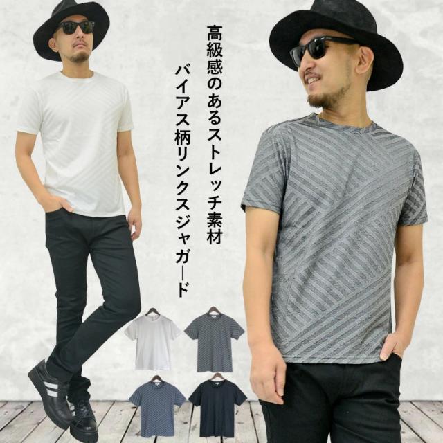 【閉店セール】リンクスジャガード編 バイアス柄 クルーネック半袖Tシャツ 3363-22 半袖Tシャツ Tシャツ メンズ 半袖 クルーネック トップス インナー 無地 シンプル ホワイト グレー ネイビー ブラック 織柄Tシャツ M L XL ネコポス対応