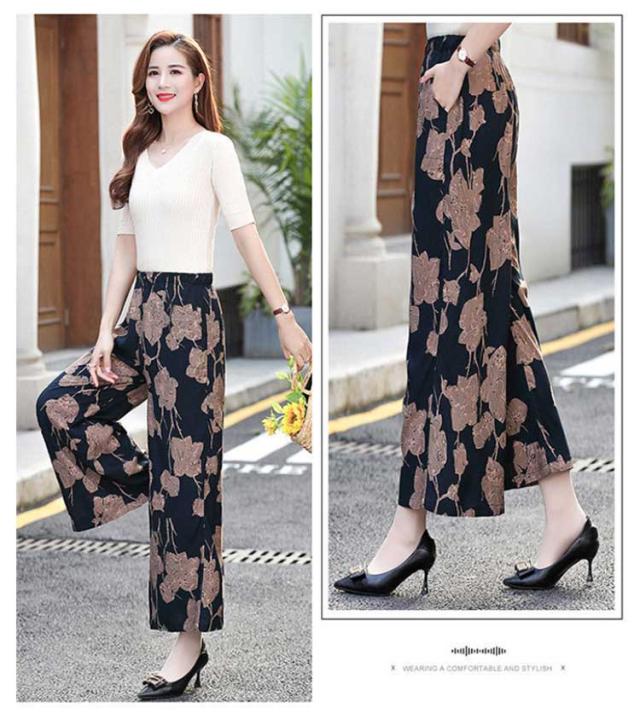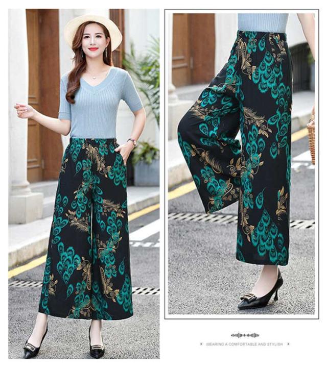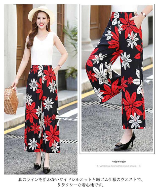 【送料無料】パンツ 全20色 ワイドパンツ ストレートパンツ 花柄 総柄 薄手 イージーパンツ 春夏秋 アンクル丈 レディース 派手 ゴムウエスト ハイウエスト 大きいサイズ 30代 40代 50代 60代 敬老の日 ママ