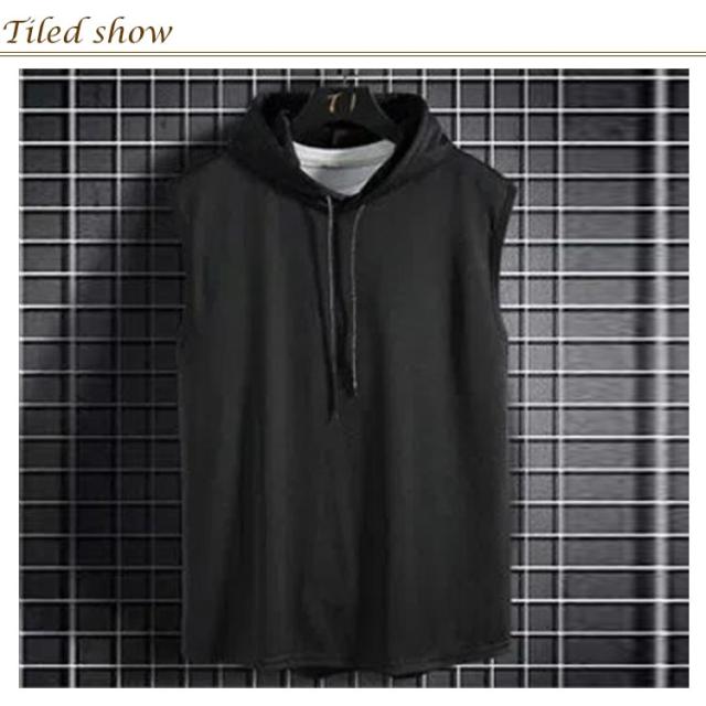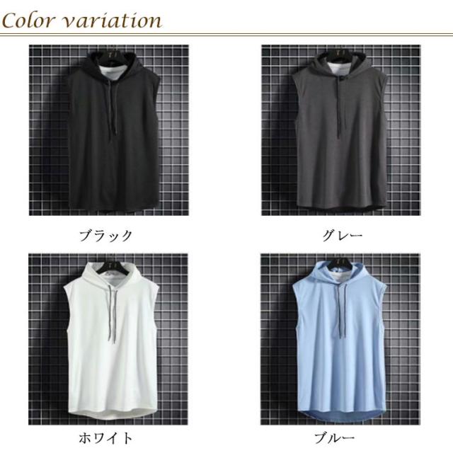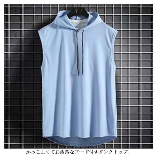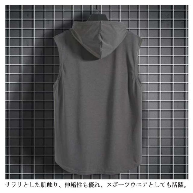 パーカー メンズ ノースリーブ タンクトップ 接触冷感 送料無料 夏 薄手 プルオーバーパーカー 袖なし フード付き スウェット 通気 無地 スポーツウェア おしゃれ スポーツウェア ジム ランニングウェア