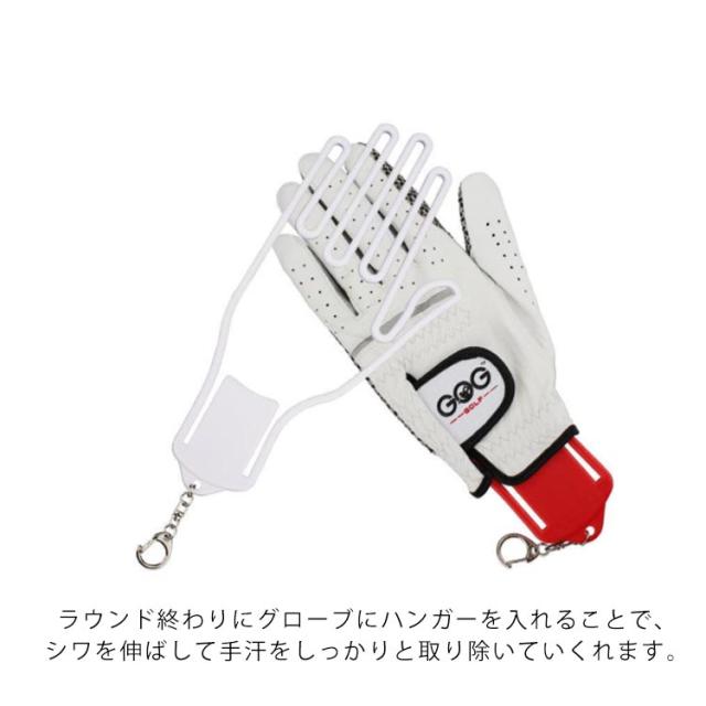 | ゴルフグローブの型崩れや手汗による湿気が気になるときに必要なゴルフグローブハンガー。 ラウンド終わりにグローブにハンガーを入れることで、シワを伸ばして手汗をしっかりと取り除いていくれます。 バッグの金具に引っかけるためのフックも付属しています。しっかりしたフックで壊れる心配もなく、乾燥中にグローブを落としてしまう心配もありません。 | |