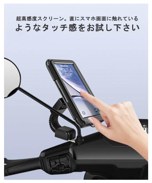 送料無料 自転車 バイク スマホホルダー イヤホン 充電 防水 タッチ操作可能 防水ケース スタンド 片手操作 雨天 クランプ 強力固定 防塵 スクーター 各種対応 クッション スマートフォンホルダー マウント アイフォン エクスペリア 横 回転 落下防止 配達員