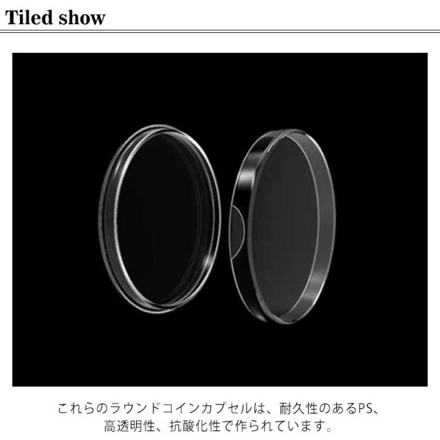| 高品質の素材:これらのラウンドコインカプセルは、耐久性のあるPS、高透明性、抗酸化性で作られています。 多機能記念硬貨 ケース:国内はもちろん海外の記念コイン・金貨・銀貨の収納に最適です。 自身の趣味としてコイン、記念硬貨の整理とコレクションにも、コイン収集家に贈り物としても最適です。 | |
