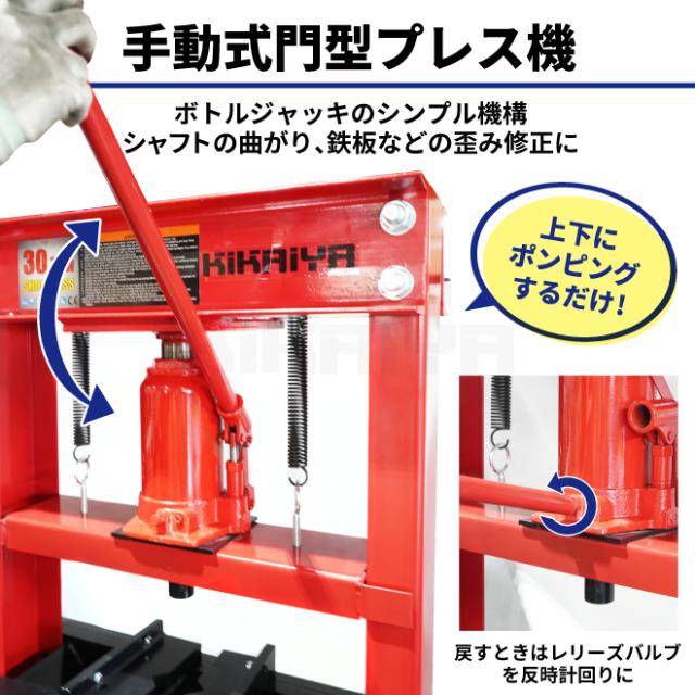 油圧プレス シンプル 30トン 手動 門型プレス機 6ヶ月保証 KIKAIYA
