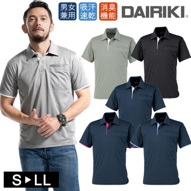 レイヤード風 ポロシャツ DAIRIKI 03113 半袖 吸汗 速乾 消臭 ダイリキ ドライ クール 大川被服 かっこいい おしゃれ 父の日 重ね着風 2色使い