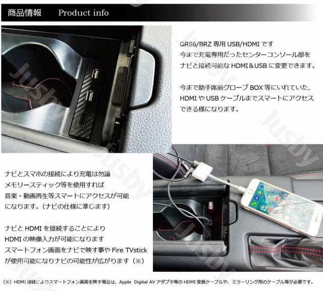 新型BRZ & GR86 (ZD8/ZN8) USB HDMIソケットSET 純正ナビ&社外ナビ 対応!カーナビとのミラーリング等をスマートに USB HDMIポート ケーブル
