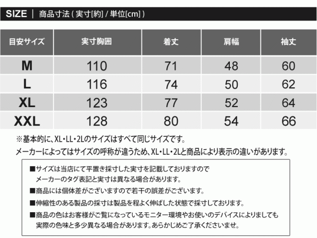 XLとLLサイズ、2Lサイズはすべて同じサイズです。 取り扱っているメーカーによりサイズの呼称が違うためXL、LLと商品によって表示に違いがあります。