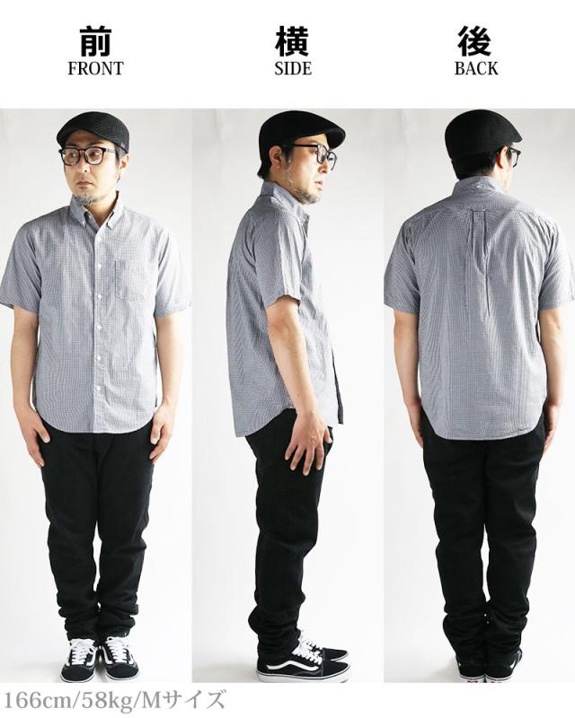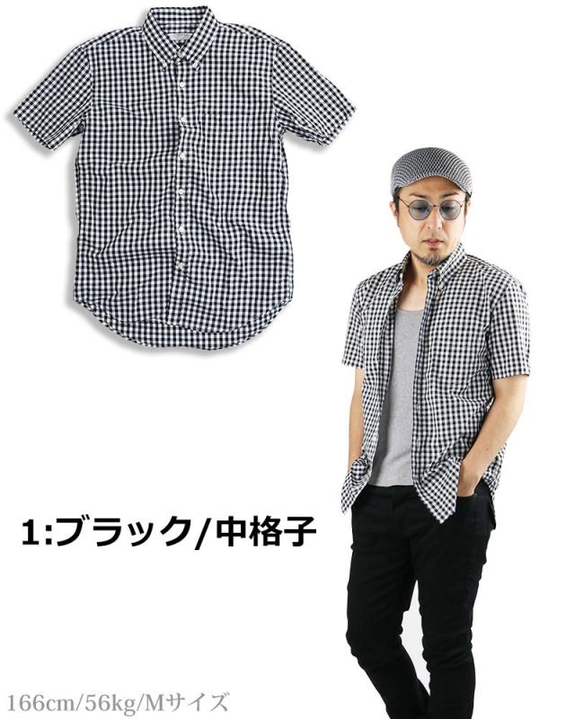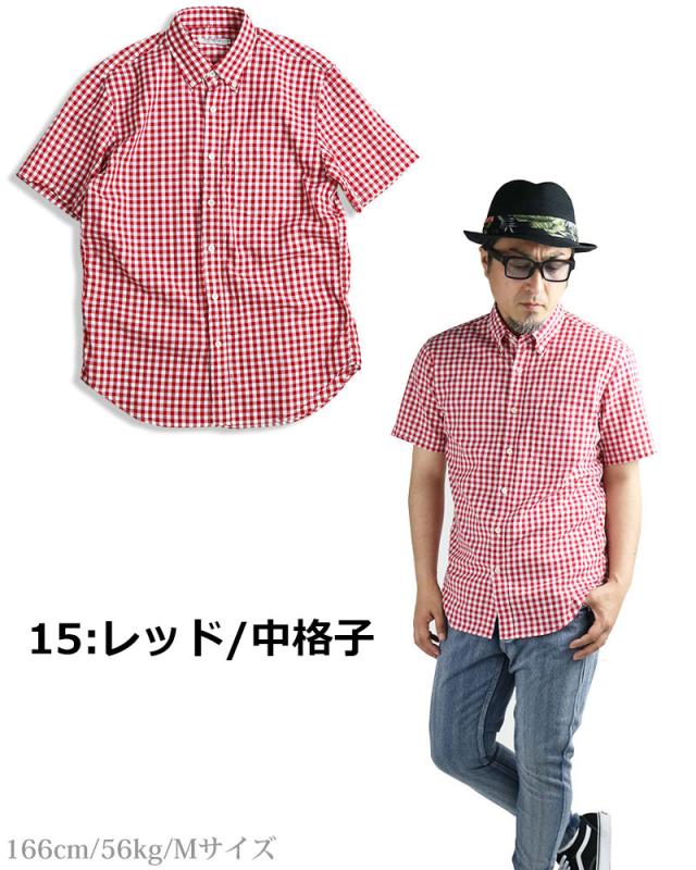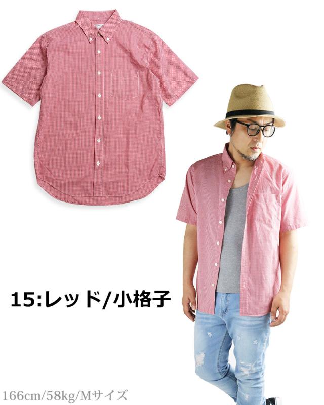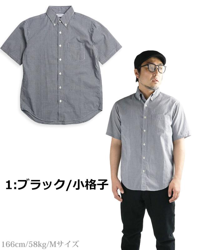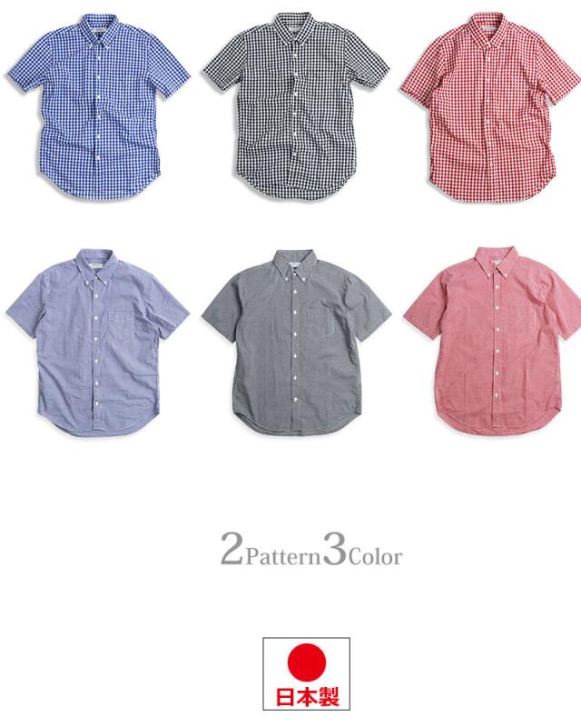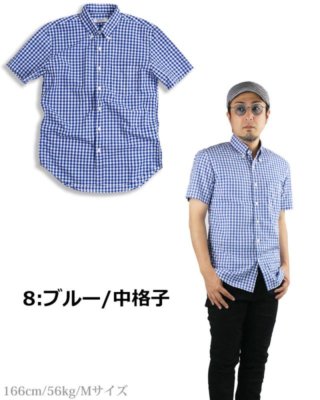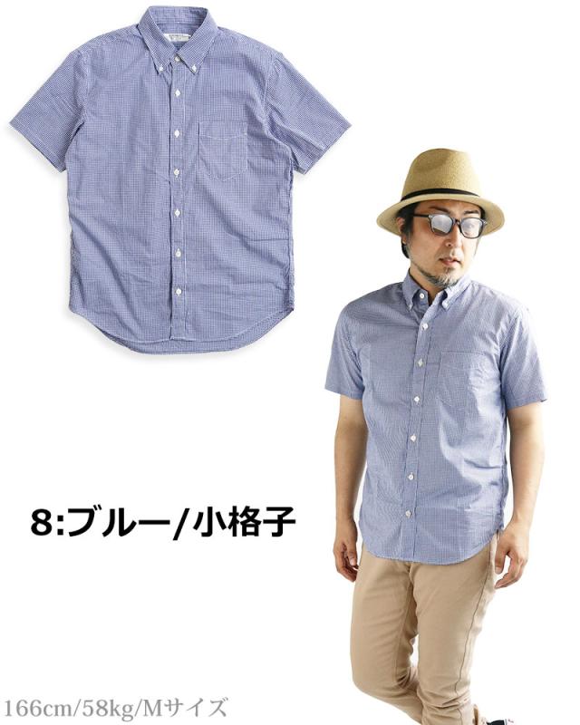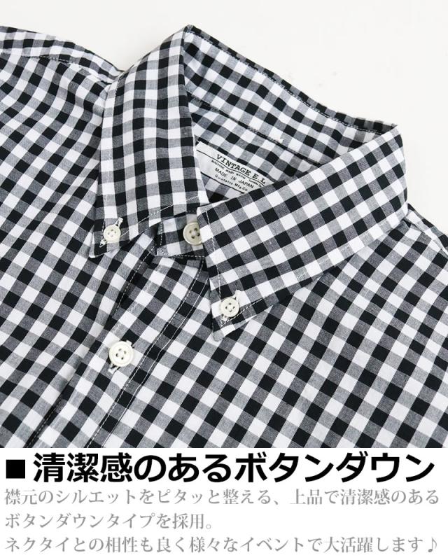 ギンガムチェック シャツ メンズ 日本製 半袖 ボタンダウンシャツ チェックシャツ スリム 細身 VINTAGE EL