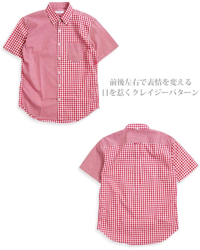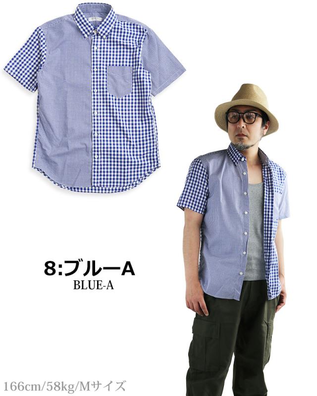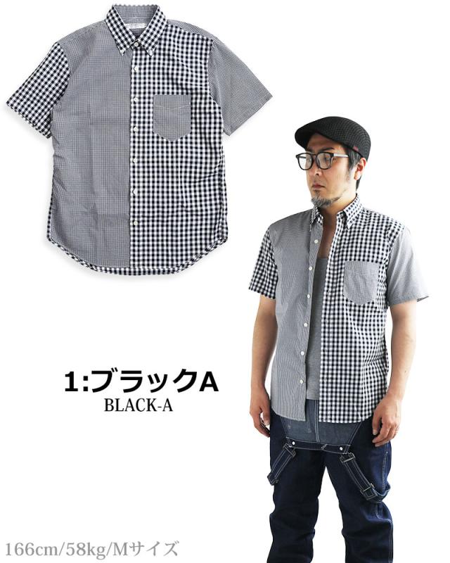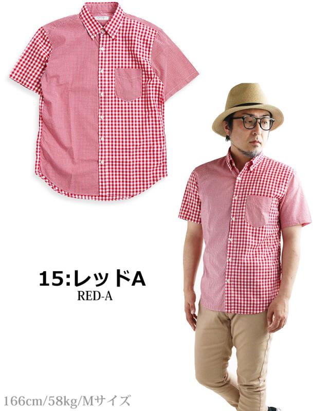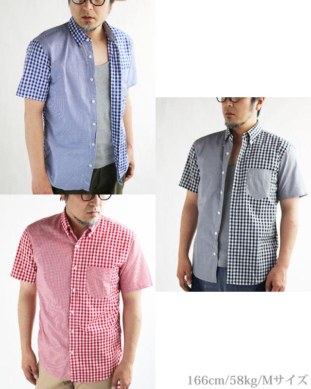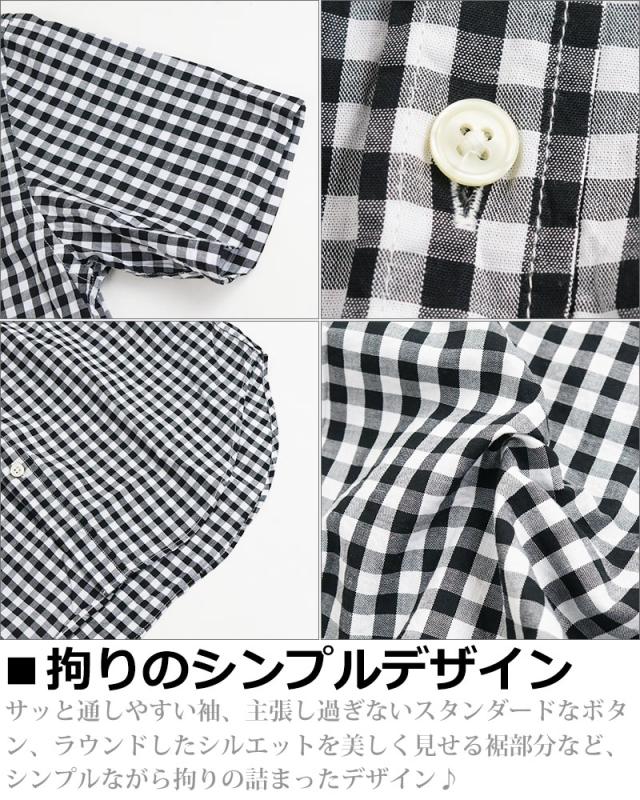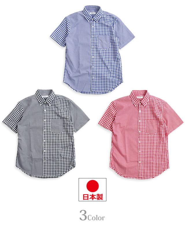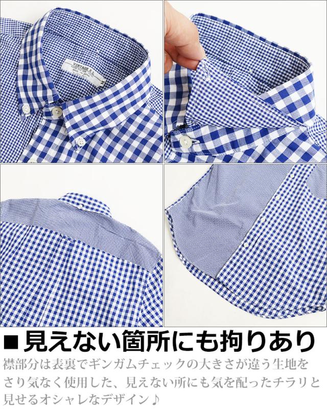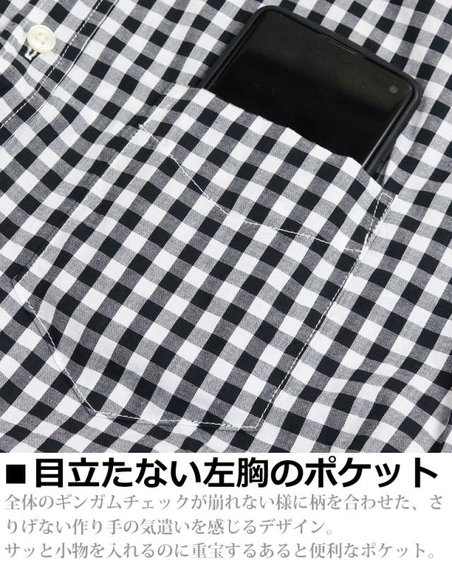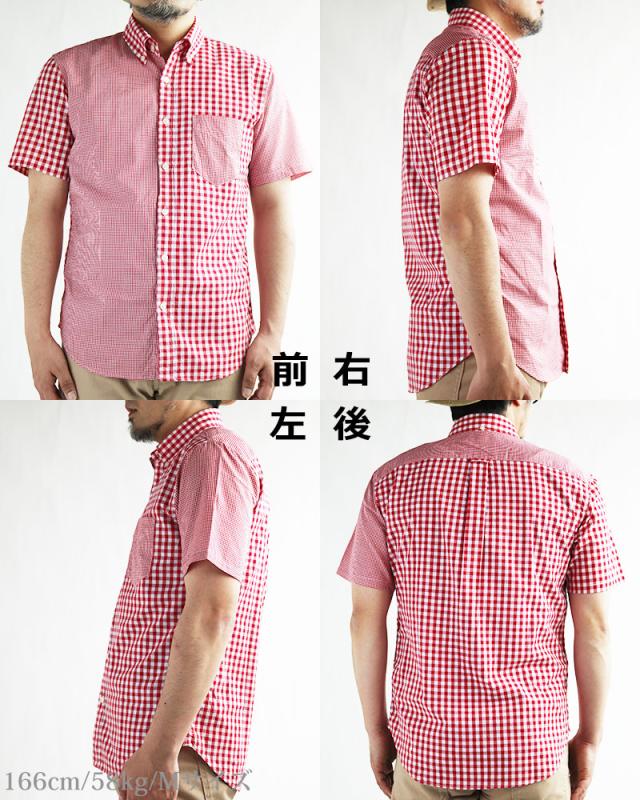 ギンガムチェック シャツ メンズ 日本製 半袖 ボタンダウンシャツ チェックシャツ スリム 細身 VINTAGE EL