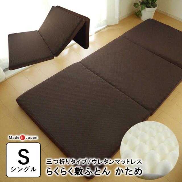 腰痛対策 敷き布団 敷布団 厚みが約8cm らくらく敷ふとん かため 軽量 軽い コンパクト ウレタンマットレス 3つ折り 三つ折り 送料無料