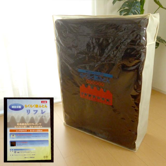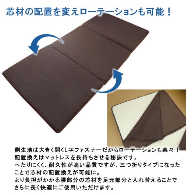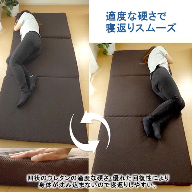 日本製 らくらく敷布団 リフレ 三つ折りタイプ 8×91×200cm シングル かため 腰痛対策 ウレタンマットレス KTZ0015T