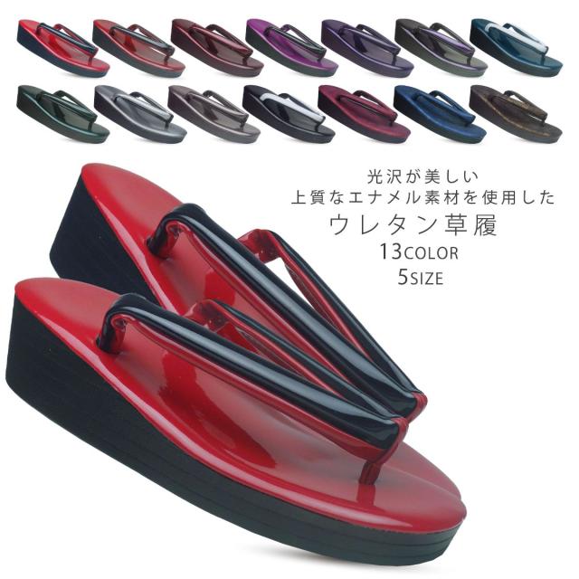 光沢が美しい ウレタン 草履 選べる 14色 5サイズ Sサイズ Mサイズ Lサイズ LLサイズ 3Lサイズ 2重鼻緒 合皮 つや消し ヘアライン仕上げ 単品 金 銀 ゴールド シルバー 白 ピンク 赤 鶸色 ブルー グリーン 結婚式 入学式 卒業式 お宮参り訪問着 留袖 振袖