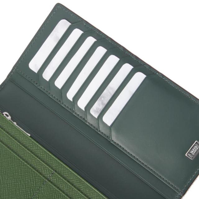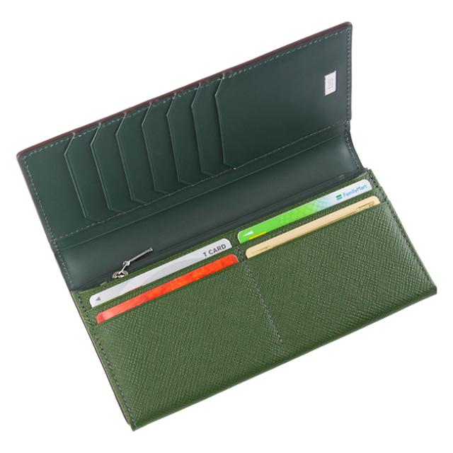 | 【OFFICE CASUALを彩る、TAKEO KIKUCHIのラグジュアリーな長財布】 英国ロイヤルワラントを所持する老舗ブランドで使用される、エレガントで上品なエンボス加工レザー「PANAMA/ パナマ」を使用したオフィスカジュアルテイストの長財布。 上質なヨーロッパ原皮のキップをベースにして、タンナー独自のエンボス加工が繊細で上質な雰囲気を演出します。国内や他のタンナーでは表現できない気品高い素材感が魅力です。 本体札入れ部分は、風琴マチを採用しており、薄いにも関わらず出し入れのしやすい作りとなっております。 一般的なマチは、マチの部分を内側に折り込みます。一方、風琴マチは外側に折り込むため、マチが広がりやすくカードなどが引っ掛かることなく出し入れできます。また、マチが広がるおかげで一般的なマチよりもより多くのカードや紙幣を収納することができます。 風琴マチを使用することでコンパクトながら収納力に特化した作りを実現しております。 【英国王室御用達ブランドも使用する、エレガントで上質な素材を使用】 本体素材は、タンナー独自のエンボス加工を施した、ヨーロッパ産オーバーキップを使用。ロイヤルワラントを所持する老舗の英国王室御用達ブランドも使用する、エレガントで上質な素材「PANAMA/パナマ」になります。国内や他のタンナーでは表現できない独特の素材感で魅了します。 裏生地にはTAKEO KIKUCHIを象徴する、オリジナルで織ったアーガイル柄のネクタイ生地を用しております。ブローチで表現した上品な内装ネームや、カード段の形状もポイントです。 【ロイヤルワラント(Royal Warrant)とは】 「王室御用達」の意味。各国の王室に対して、商品やサービスを提供できる選ばれたブランドや会社に授けられる称号を指す。王室に認められた一流の品質と歴史があるブランドのみが、その称号を得ることが可能。 ■機能 ・カード段x7 ・フリーポケットx2 ・小銭入れ ・カードポケットx4 ・札入れ ・フリーポケットx2 |
