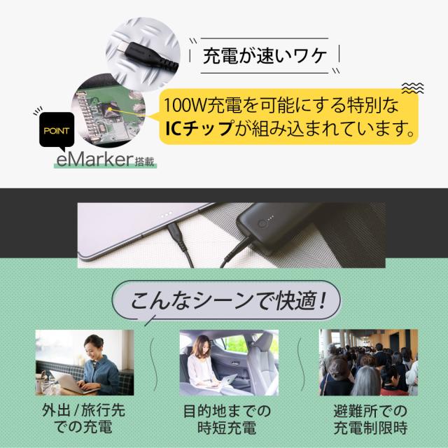 Type-Cケーブル 充電ケーブル 2m USB Type-C to C データ転送 PD100W対応 eMarker+Mini-Breaker搭載