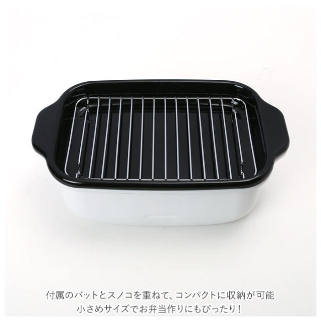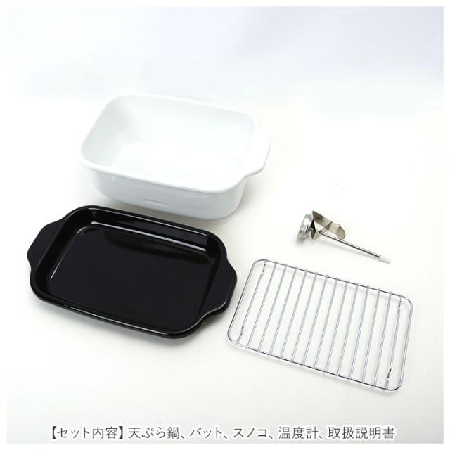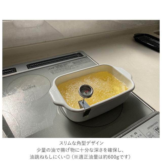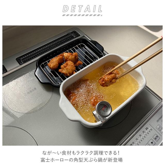 天ぷら鍋 ミニ 角 通販 角型 IH対応 揚げ鍋 ホーロー 少ない油 温度計 バット スノコ網 深い 油跳ねしにくい コンパクト 収納 ほうろう 琺瑯 ホワイト