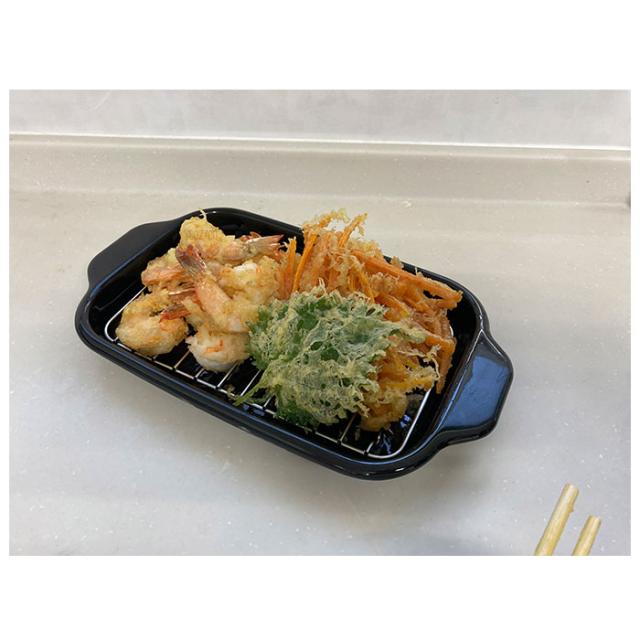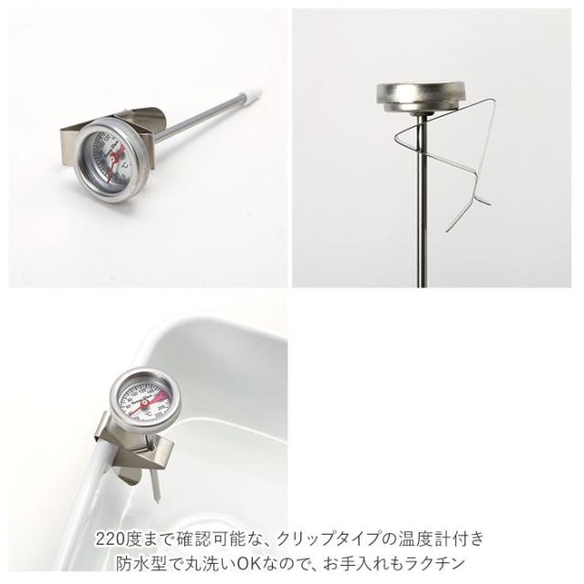 | 商品説明 | ・なが〜い食材もラクラク調理できる!富士ホーローの角型天ぷら鍋が新登場。 ・スリムな角型デザイン。少量の油で揚げ物に十分な深さを確保し、油跳ねもしにくい◎(※適正油量は約600gです。) ・対応熱源はガスコンロ、IH200V。(※IHの揚げ物モードには非対応。) ・内側の幅が約20cmあり、エビの天ぷらやアスパラガス、ロースカツなど長めの食材も揚げやすいサイズ感。 ・220度まで確認可能な、クリップタイプの温度計付き。防水型で丸洗いOKなので、お手入れもラクチン。 ・鍋のコーナーが注ぎ口代わりになり、油の移し替えがカンタン。 ・卓上で使っても画になる美しい琺瑯製。熱効率が良く、揚げ物がカラッと仕上がるのもポイント♪ ・滑らかな表面は、油汚れもすっきり洗い落とせるのが嬉しい。温度計以外は食洗機対応◎ ・付属のバットとスノコを重ねて、コンパクトに収納が可能。 ・小さめサイズでお弁当作りにもぴったり! ・【セット内容】天ぷら鍋、バット、スノコ網、温度計、取扱説明書 |