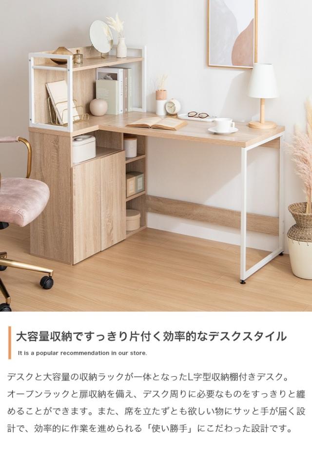 パソコンデスク 幅120cm L字 収納 大容量 扉収納 書斎机 PCデスク ラック付きデスク ディスプレイラック 本棚 テレワーク 机 学習机 作業台 オフィスデスク ワークデスク ゲーミングデスク(代引不可)【送料無料】